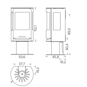 Сталева піч LUMA 1 на ніжці від Wiking (Данія) – сучасна циліндрична дров’яна піч з тристороннім і подвійним боковим склом для максимального огляду полум’я. Корпус зі сталі найвищої якості (Inox) та чавунні двері забезпечують довговічність і стійкість до високих температур. Система “чисте скло”, подвійне догорання, подача повітря ззовні та вбудована система Autopilot гарантують економне та ефективне горіння.